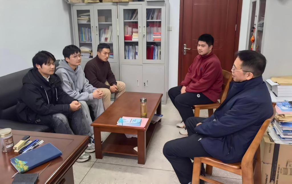 课后,肖洋与机械工程学院联系点宿舍学生座谈,听取学习、实习及求职规划汇报,回应就业疑问,叮嘱学生理性决策、善用优势,鼓励考研学子坚定信心、全力迎考。