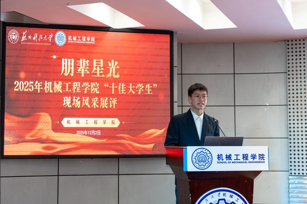 2025年12月2日,机械工程学院在天平校区图书馆报告厅举办朋辈星光“十佳大学生”评选活动。校教务处、学生处、团委、关工委及机械学院等单位负责人出席活动并担任评委。