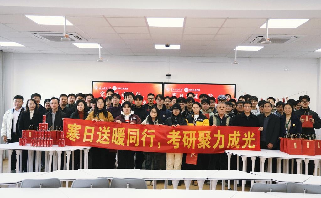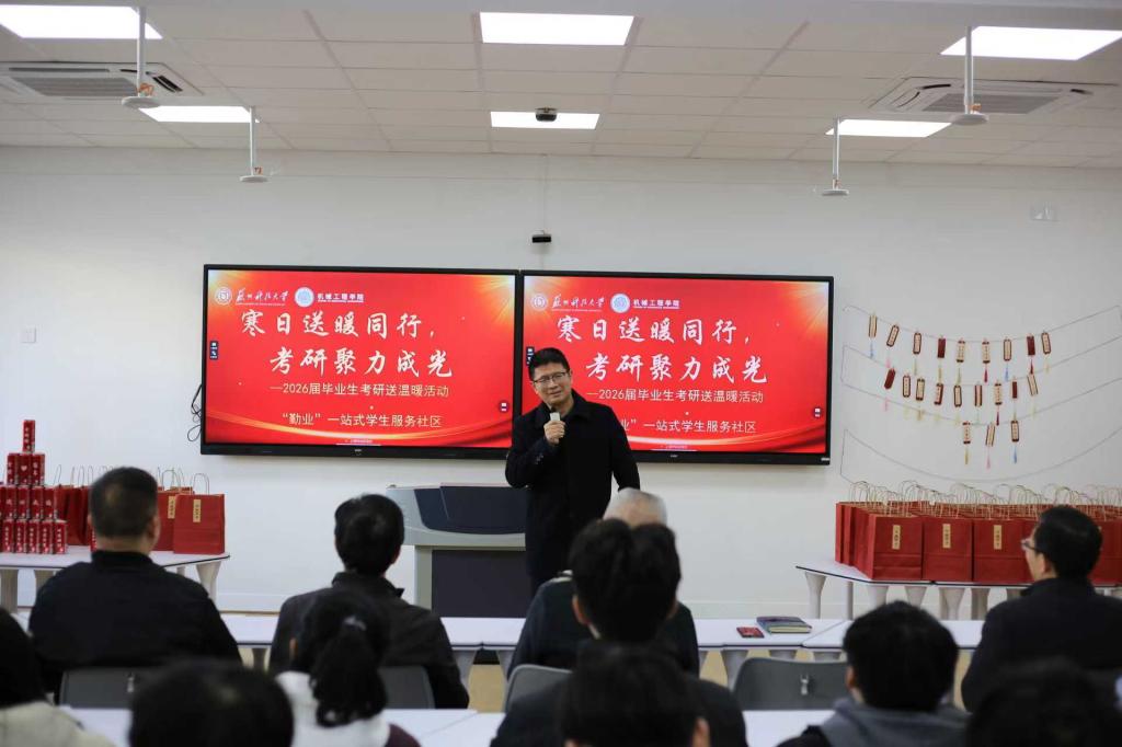 12月3日下午,“勤业”一站式学生服务社区在天平校区1-202教室举办机械工程学院2026届毕业生考研送温暖活动。校关工委、学院领导班子及全体学工教师参加活动,为即将奔赴考研战场的学子加油鼓劲,传递校院关怀与期许。